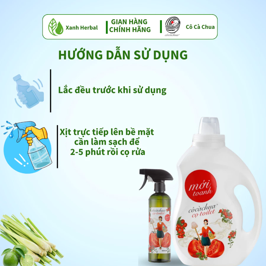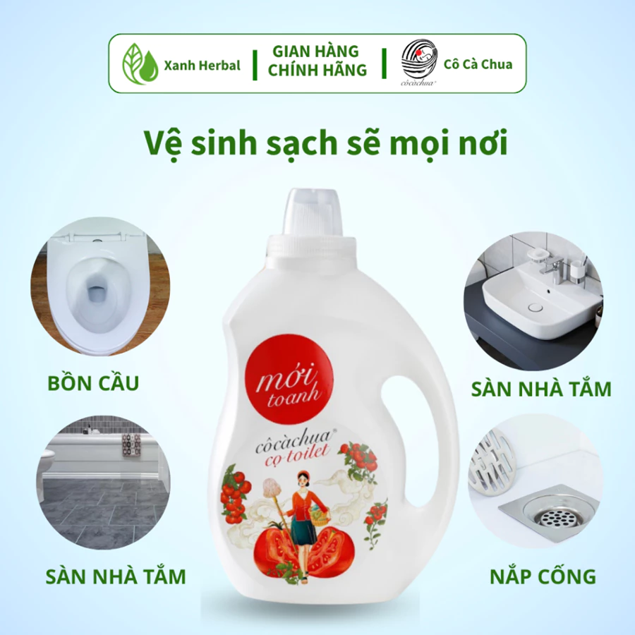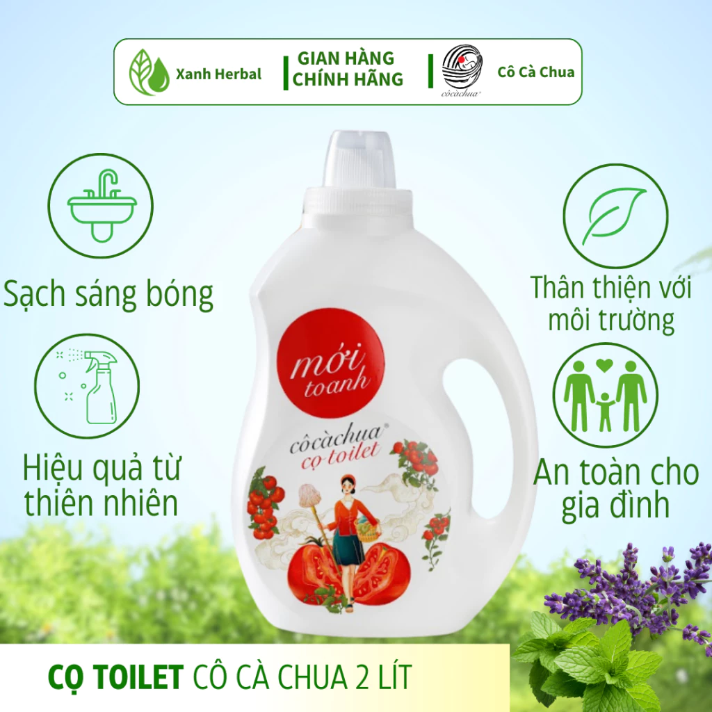 [2 Lít] Nước Tẩy Rửa Bồn Cầu Toilet Cô Cà Chua Sinh Học Xanh Herbal, Khử Mùi, Tẩy Sạch Vệ Sinh, Hương Bạc Hà Oải Hương