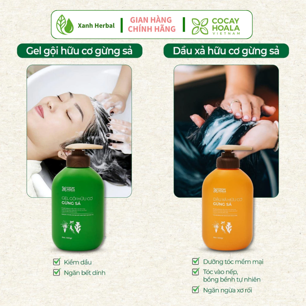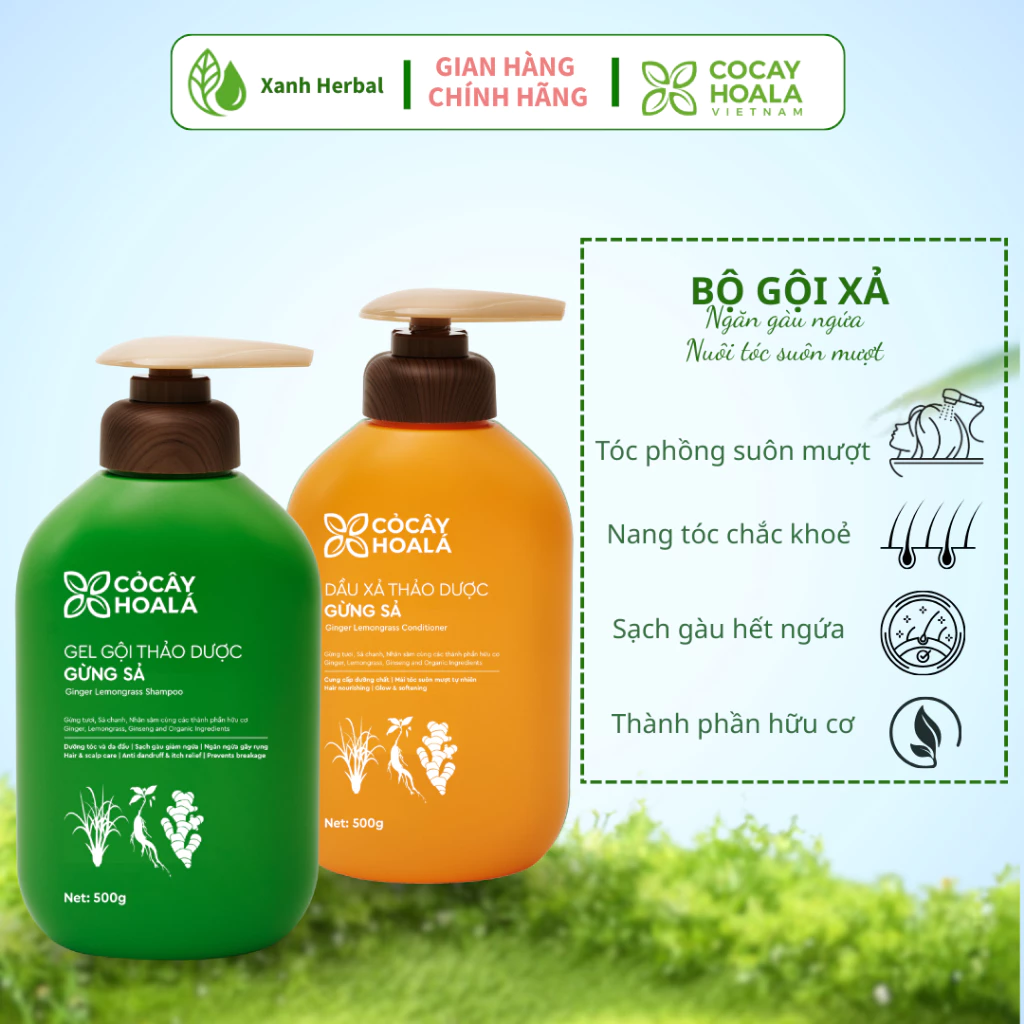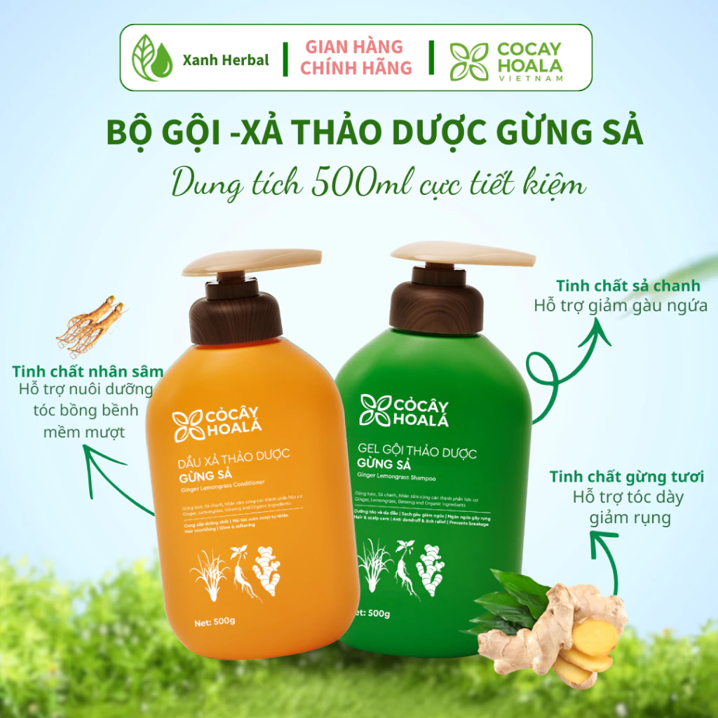Combo gội + xả thảo dược gừng sả Cỏ Cây Hoa Lá