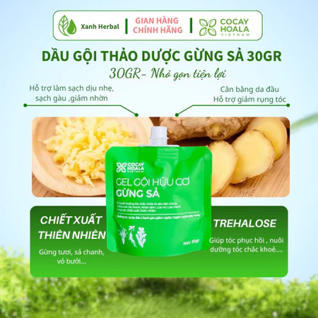 Chiết xuất thảo dược hữu cơ gừng và sả, làm sạch da đầu dịu nhẹ