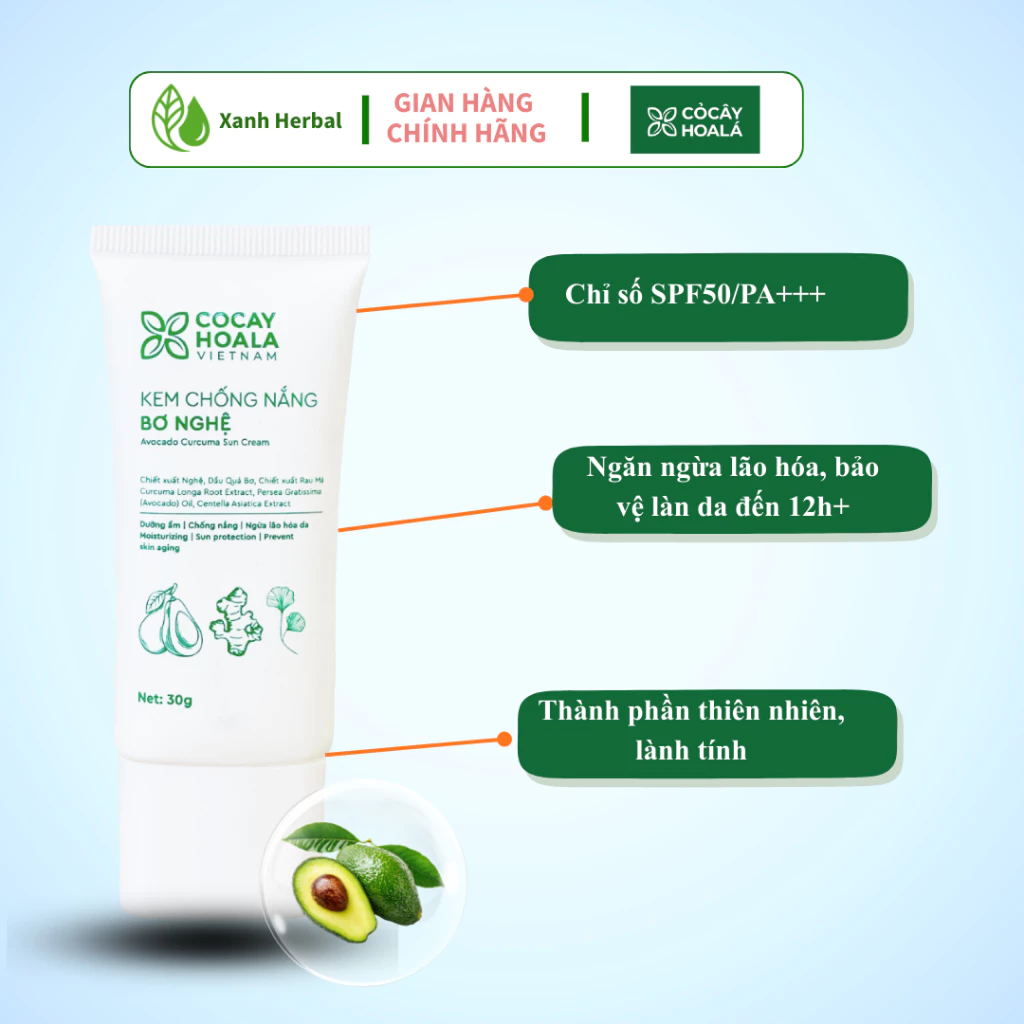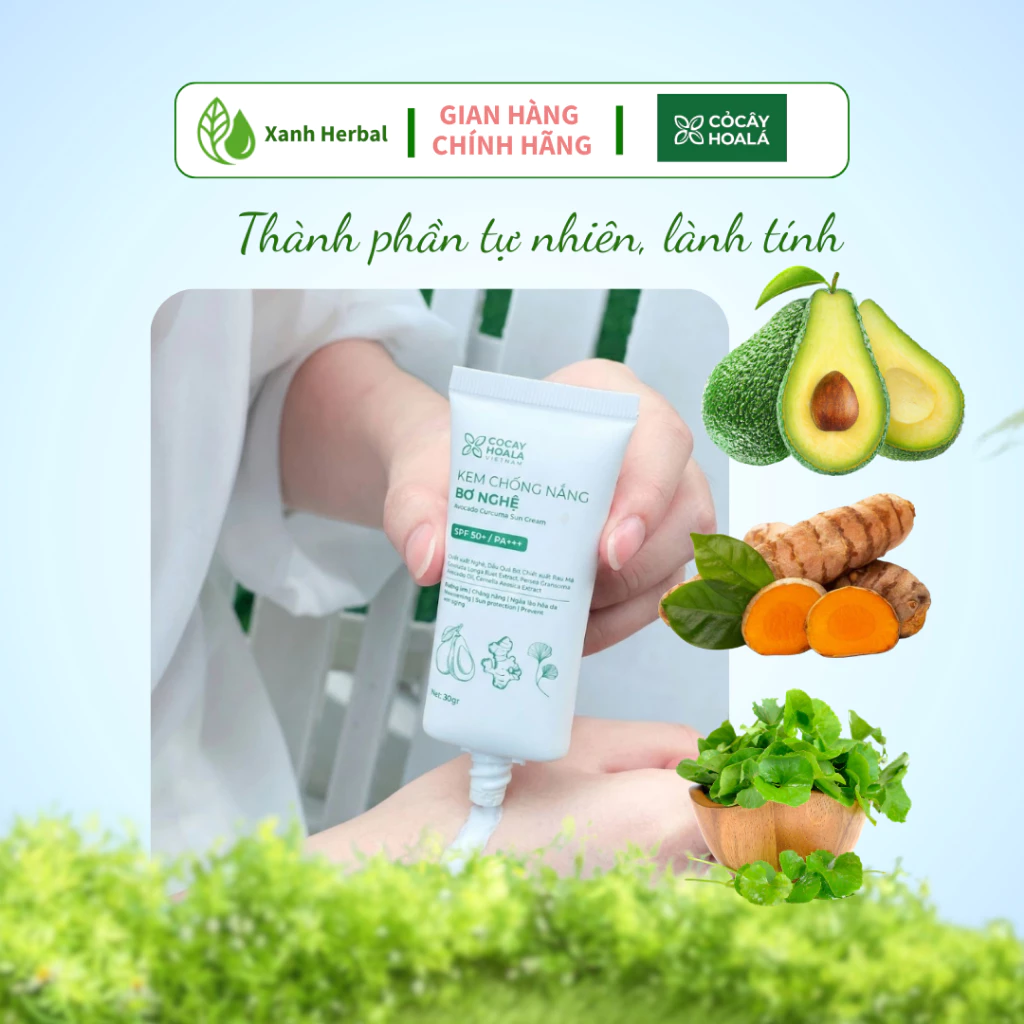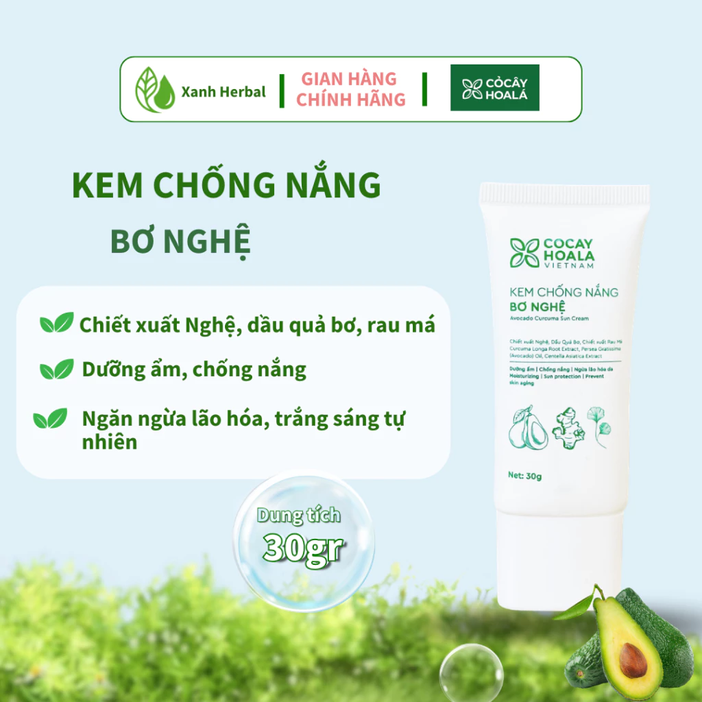 Kem chống nắng bơ nghệ 3in1 Cỏ cây hoa lá 30g | Xanh Herbal
