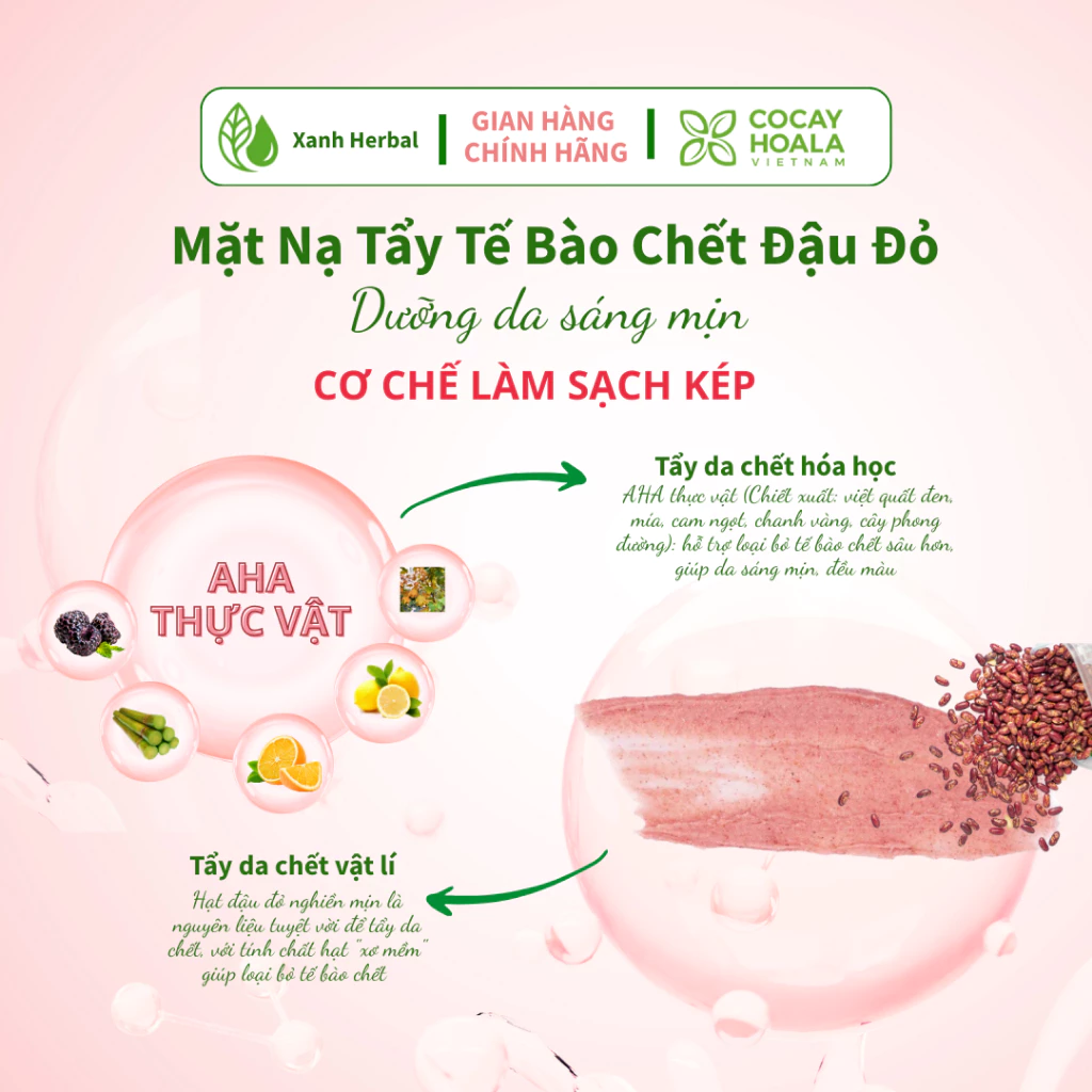 Bột Đậu Đỏ Nghiền Mịn: hạt “xơ mềm” giúp lấy đi tế bào chết và da xỉn màu một cách nhẹ nhàng, hạn chế làm tổn thương da
