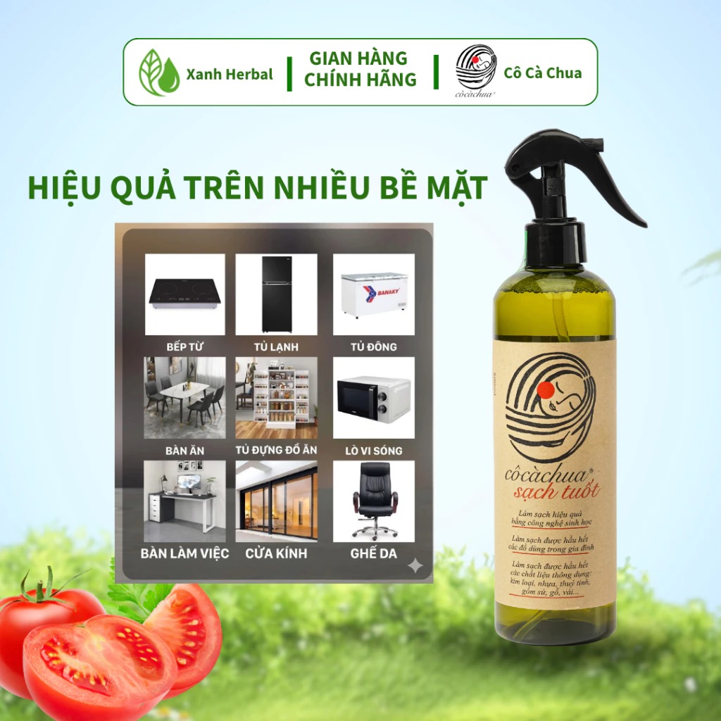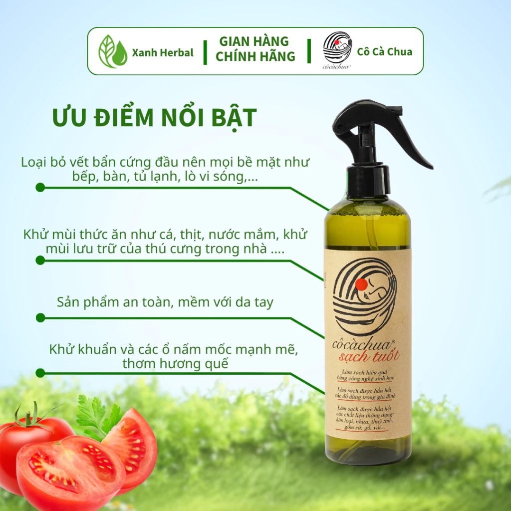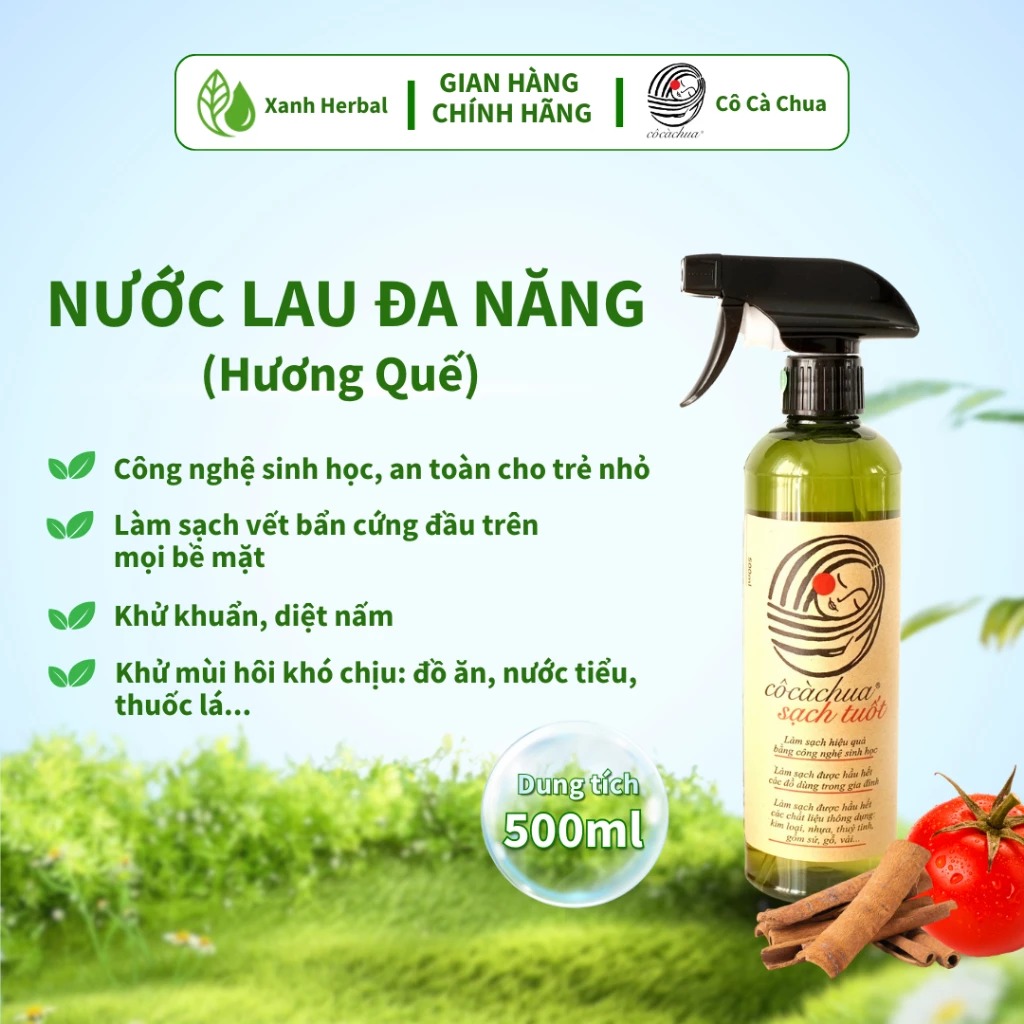 Nước lau đa năng Sạch Tuốt Truyền Thống 500ml – Cô Cà Chua sử dụng công nghệ lên men sinh học giúp tẩy sạch vết bẩn, vết ố lâu ngày trên bề mặt kính và nhiều bề mặt khác mà không làm trầy xước – không bay màu – không gây khô da tay. Sản phẩm khử mùi, diệt nấm mốc mạnh mẽ, trả lại vẻ sáng bóng và không khí trong lành cho không gian gia đình.