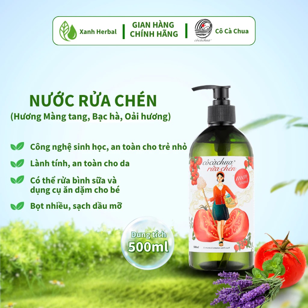 Nước Rửa Chén Bát Cô Cà Chua Mới Toanh Hương Oải Hương, Lưu Thơm Lâu, Thành Phần Tự Nhiên Bảo Vệ Da Tay 500ml