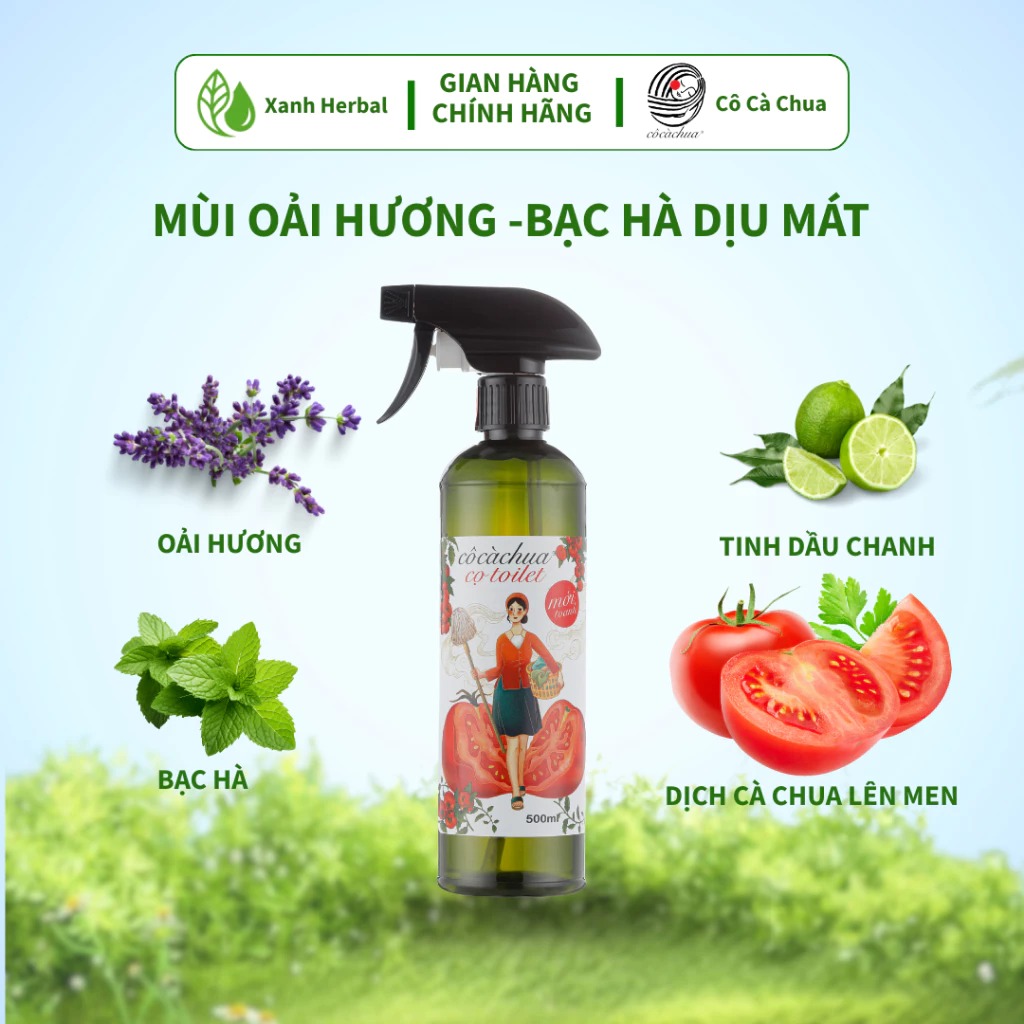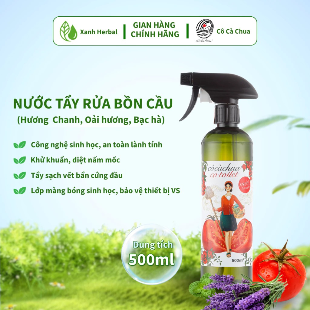Nước Tẩy Rửa Bồn Cầu Toilet Cô Cà Chua, Khử Mùi, Tẩy Sạch Vệ Sinh, Hương Bạc Hà Oải Hương – Xanh Herbal